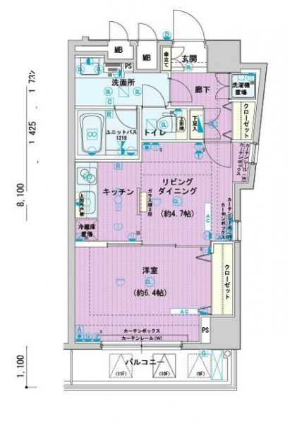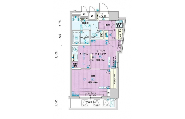 LDK 4.7 畳 洋室 6.4 畳 |