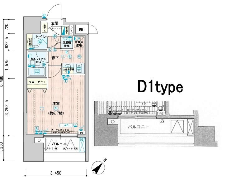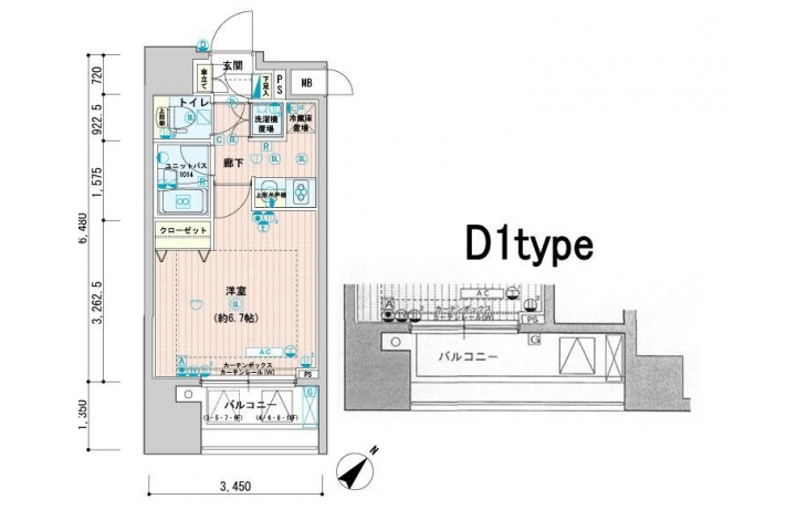 | 専有面積 | 22.12m² | バルコニー面積 | 4.70m² |