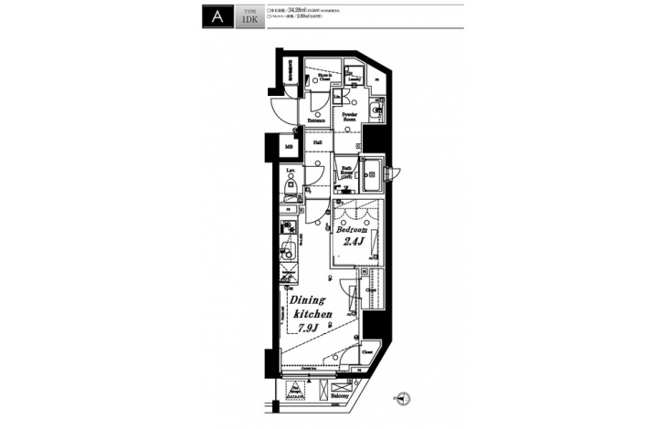 | 専有面積 | 34.28m² | バルコニー面積 | |