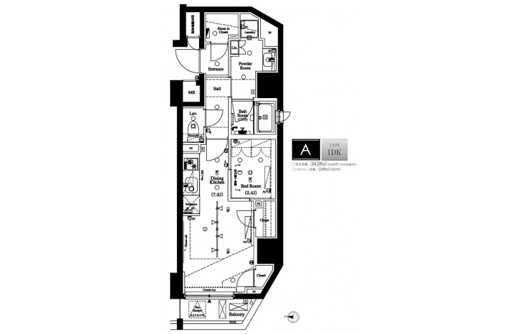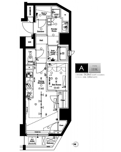 | 専有面積 | 34.28m² | バルコニー面積 | 2.89m² |