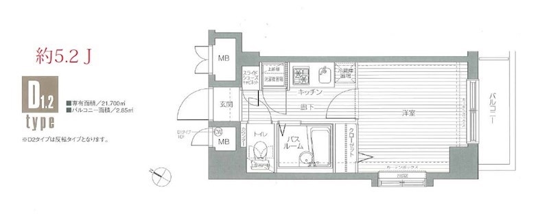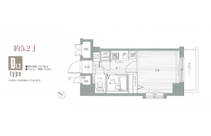 | 専有面積 | 21.70m² | バルコニー面積 | 2.85m² |