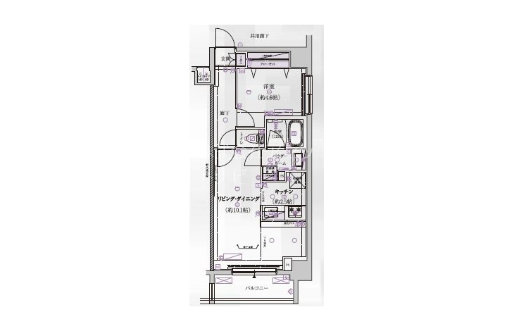 | 設備・条件 | オートロック、TVドアホン、防犯カメラ、ディンプルキー、ダブルロックキー、宅配ボックス、駐輪場、エレベータ、デザイナーズ、2階以上、システムキッチン、カウンターキッチン、バス・トイレ別、温水洗浄便座、浴室乾燥機、室内洗濯機置き場、洗濯機置き場有、フローリング、24時間換気システム、エアコン、バルコニー、分譲賃貸、敷金なし、ペット相談 | ||