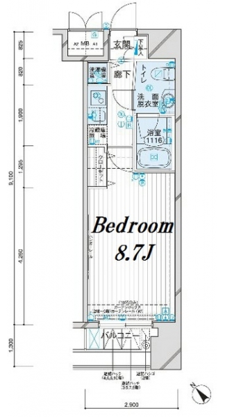K 2 畳 洋室 8.7 畳 |