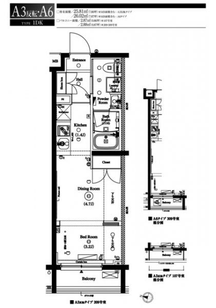 | 専有面積 | 26.02m² | バルコニー面積 | 2.88m² |