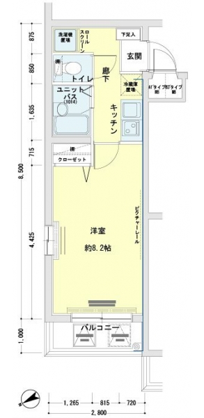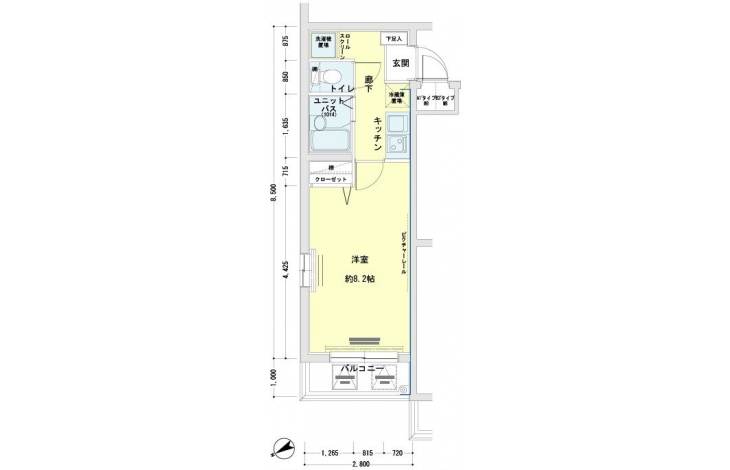 K 2 畳 洋室 8.2 畳 |