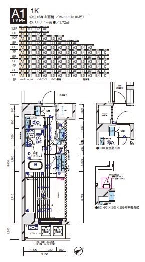 | 専有面積 | 26.66m² | バルコニー面積 | |