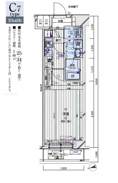 | 専有面積 | 25.38m² | バルコニー面積 | |