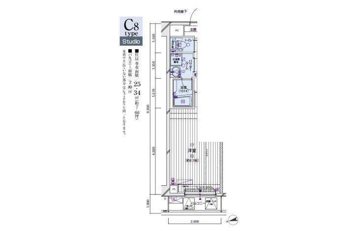| 専有面積 | 25.34m² | バルコニー面積 | |