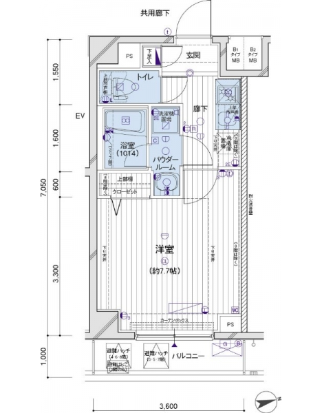 洋室 7.7 畳 K 2 畳 |