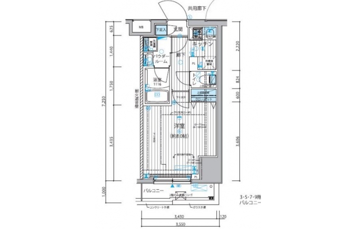 | 間取り | 1K | 階建 | 2階/13階建 |