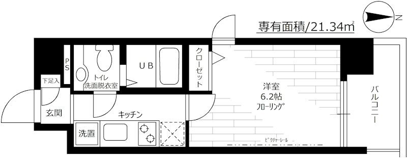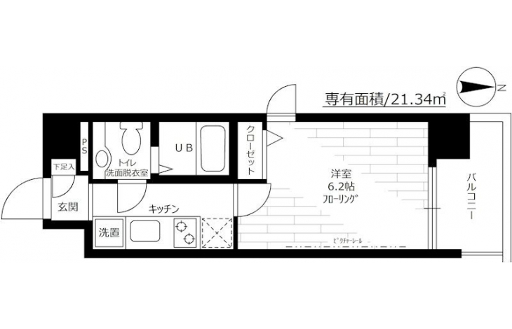 | 専有面積 | 21.34m² | バルコニー面積 | |