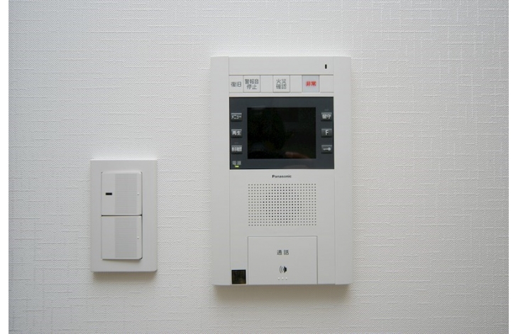 【オートロック】エントランスの集合玄関機のカメラにより訪問者を映像で確認出来ます。その他にも解錠表示機能等で居住者の安全と安心を確保します。