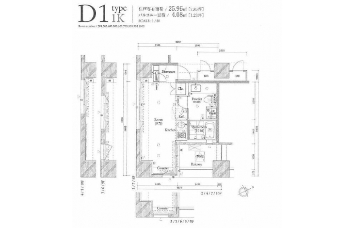 | 専有面積 | 25.96m² | バルコニー面積 | |