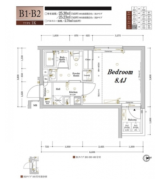 | 専有面積 | 25.30m² | バルコニー面積 | |