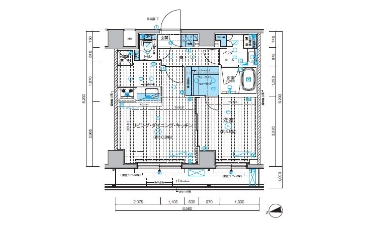 | 設備・条件 | BSアンテナ、CSアンテナ、CATV、光ファイバー、オートロック、TVドアホン、防犯カメラ、宅配ボックス、駐輪場、エレベータ、2階以上、最上階、システムキッチン、カウンターキッチン、バス・トイレ別、温水洗浄便座、浴室乾燥機、室内洗濯機置き場、フローリング、24時間換気システム、エアコン、ウォークインクローゼット、バルコニー、分譲賃貸、礼金なし、敷金なし、ペット相談、ルームシェア相談 | ||
