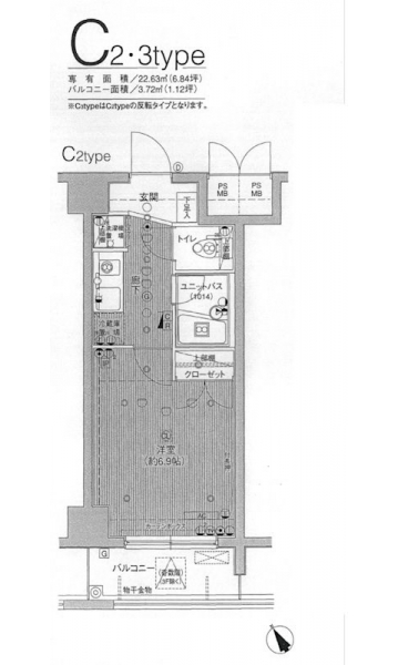 | 専有面積 | 22.63m² | バルコニー面積 | |