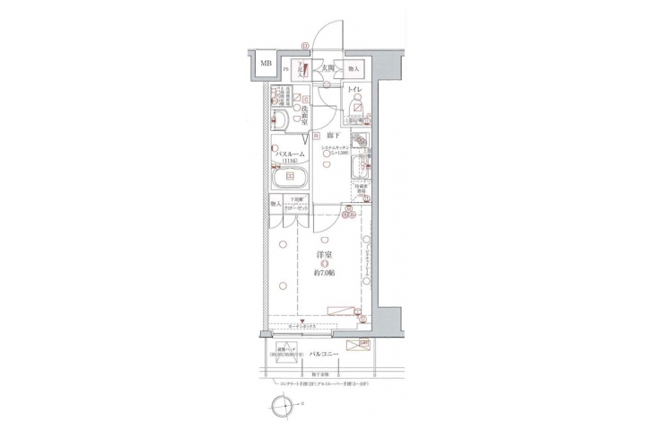 | 専有面積 | 25.51m² | バルコニー面積 | |