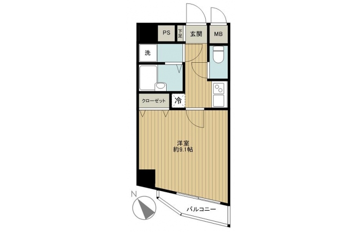| 専有面積 | 27.64m² | バルコニー面積 | 2.91m² |