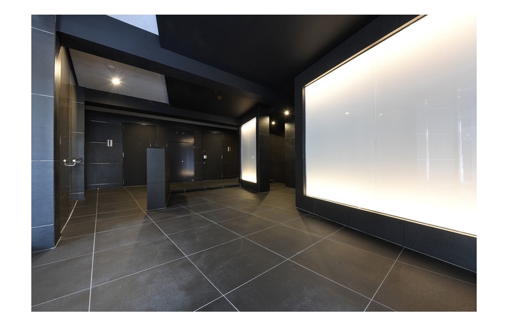 【エントランスホール】エントランス内に歩みを進めた瞬間、都会の喧騒とは無縁の静寂の世界へと誘われます。それはやわらかな照明の光につつまれた美しくエレガントな雰囲気が醸し出す、品格あるライフステージへのプロローグ。ここから始まる新たな都市生活に素敵な彩りを添えています。