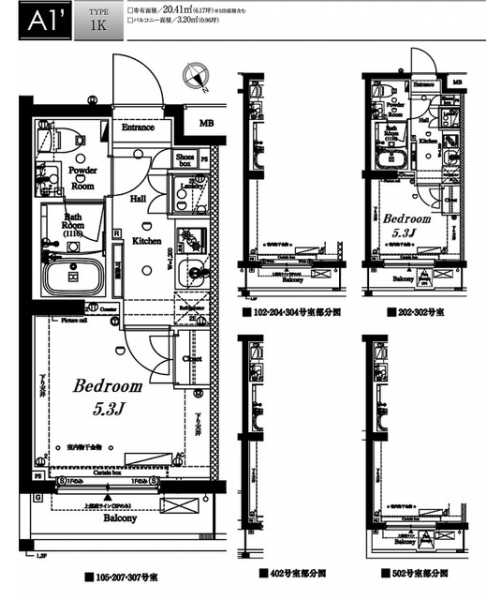 | 専有面積 | 20.41m² | バルコニー面積 | |