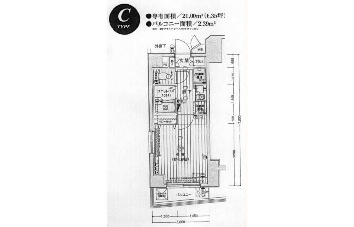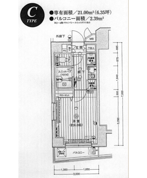 | 専有面積 | 21.00m² | バルコニー面積 | |