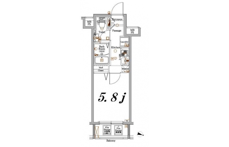 K 2 畳 洋室 5.8 畳 |