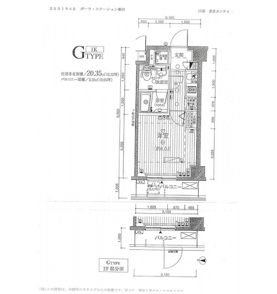 | 専有面積 | 20.35m² | バルコニー面積 | |