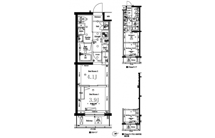 K 2 畳 洋室 4.1 畳 洋室 3.9 畳 |