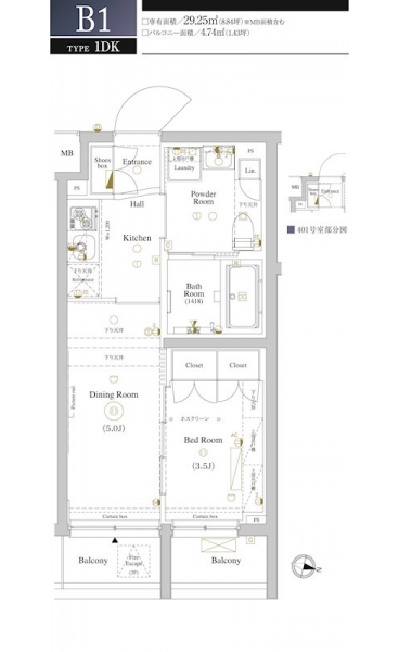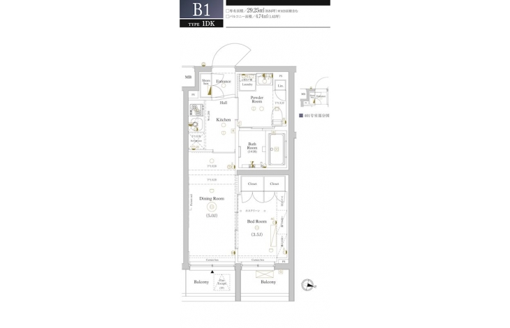 | 専有面積 | 29.25m² | バルコニー面積 | 4.74m² |