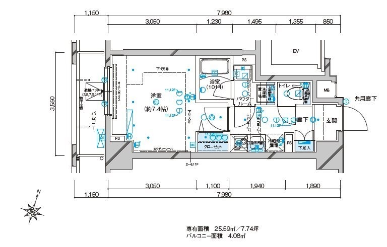 | 専有面積 | 25.59m² | バルコニー面積 | |
