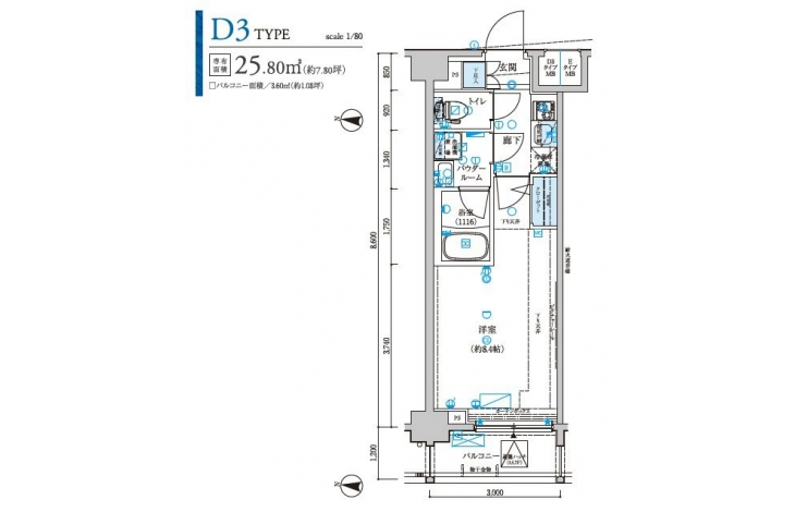 | 専有面積 | 25.80m² | バルコニー面積 | |