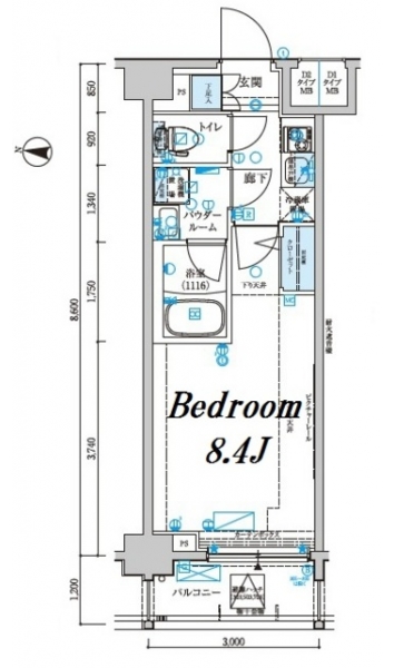 K 2 畳 洋室 8.4 畳 |
