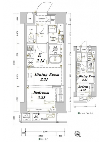 K 2.1 畳 洋室 3.2 畳 洋室 3.2 畳 |