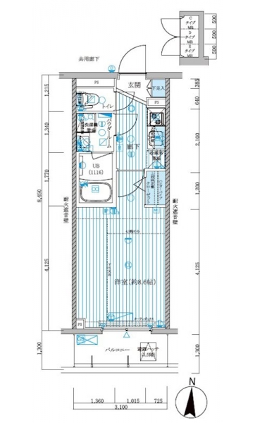 | 専有面積 | 26.49m² | バルコニー面積 | |