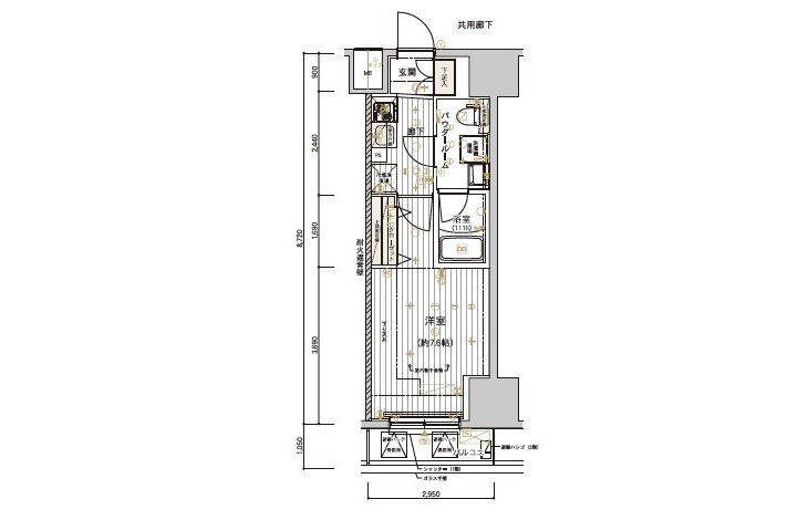 | 専有面積 | 25.72m² | バルコニー面積 | 3.09m² |