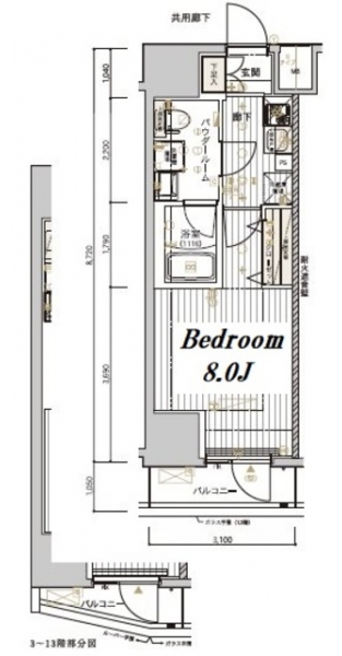 | 専有面積 | 27.03m² | バルコニー面積 | |