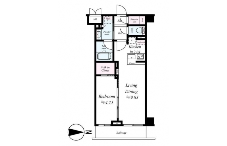 LDK 9.8 畳 洋室 4.7 畳 |