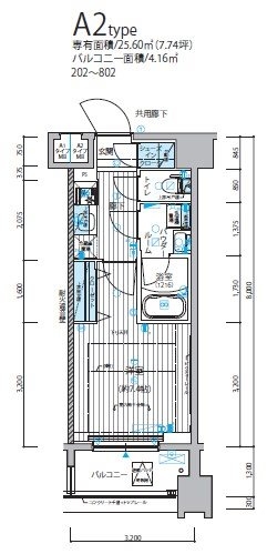 | 専有面積 | 25.60m² | バルコニー面積 | |