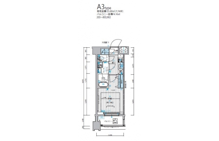 | 専有面積 | 25.60m² | バルコニー面積 | |
