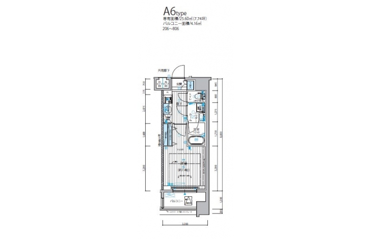 | 専有面積 | 25.60m² | バルコニー面積 | |