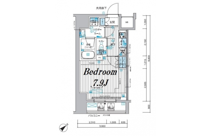 K 2 畳 洋室 7.9 畳 |