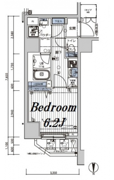 K 2 畳 洋室 6.2 畳 |