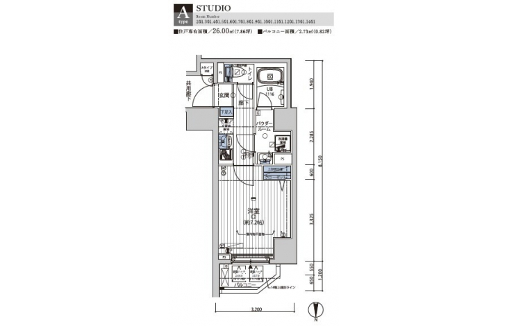 | 専有面積 | 26.00m² | バルコニー面積 | |