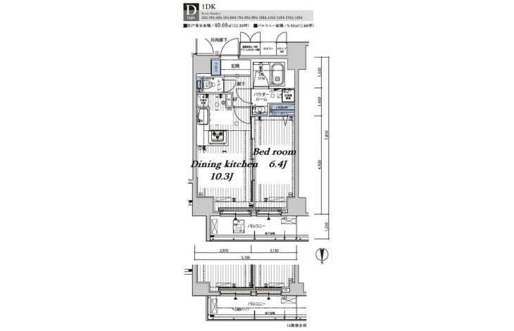 | 間取り | 1DK | 間取り内訳 |