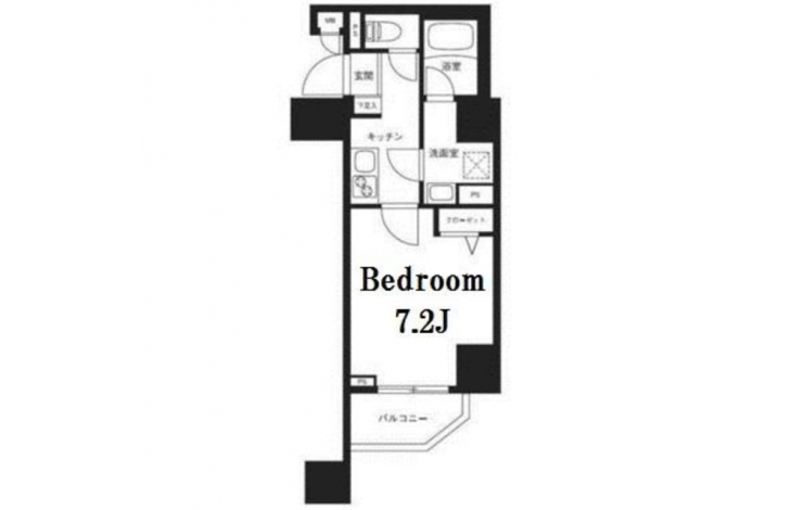 K 2 畳 洋室 7.2 畳 |