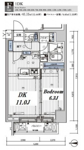 | 専有面積 | 41.15m² | バルコニー面積 | |