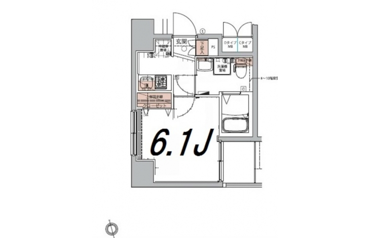 K 2 畳 洋室 6.1 畳 |