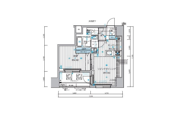 K 2.5 畳 LD 9.5 畳 洋室 6.3 畳 |