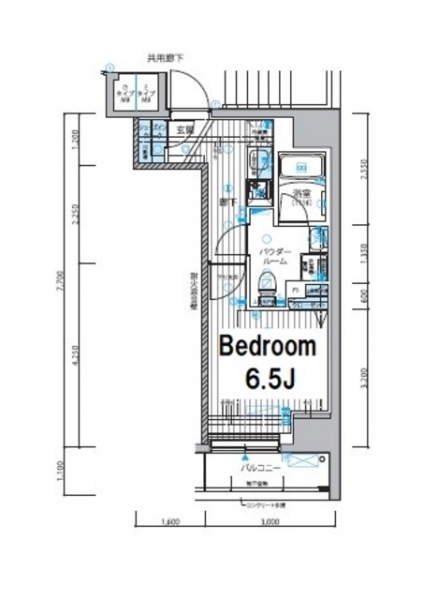 K 2 畳 洋室 6.5 畳 |