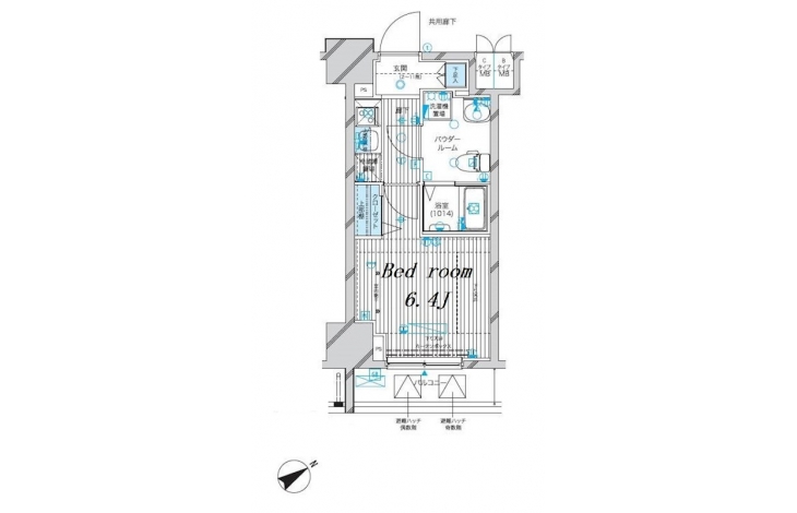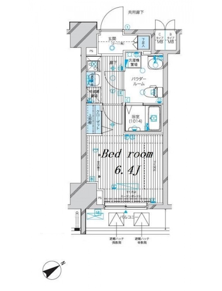 K 2 畳 洋室 6.4 畳 |